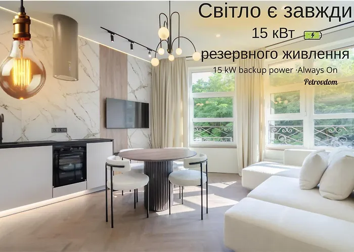 3-258 Pechersk Plaza, Boichuka 17, Kyiv Centre, Panoramic City View, 15 Kw Backup Power, Petrovdom Apartment is located in the Pecherskyj district, and Druzhby-Narodiv tube station is a mere 1 km away. Guests travelling by car can benefit from private car parking available on site.